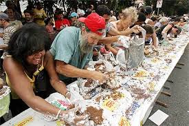 São Paulo completa hoje seus 455 anos de vida! Desta forma, podemos dizer, então, que São Paulo já é um ser vivo, afinal, temos tantos organismos vivos percorrendo por ela, que mais parece mesmo um novo ser! A cada aniversário a cidade vem trazendo novas atrações para todos celebrarem esta data, mas o tradicional bolo de quilômetros*, não pôde continuar por falta de patrocinador. Então, aquela cena deprimente do povo querendo pegar a maior quantidade de bolo para si, com sacolas, formas, sacos plásticos, as mãos, a roupa e o que mais era possível de se servir como uma "draga" que, em poucos segundos, fazia o bolo sumir para, sabe-se lá, onde, ficou só na "lembrança"! Aquilo acaba parecendo, para o mundo, que somos o país com o maior índice de pobreza, falta de classe e desnutrição. E o agravante: de graça (para o povo)! Mas nem sei, também, se adiantaria cobrar por isso, talvez nada fosse mudar a cena que já conhecemos.